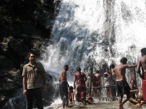 The next place in our trip was the “Monkey Falls” near pollachi. In fact it is just 3 KMs more from the Azhiyar dam that we visited the previous day. So we set out in the same bus that took us to Azhiyar, got down at Azhiyar dam itself and decided to walk the three KMs to see if we could end up in something interesting on the way. Just about a KM from Azhiyar, there was a small place off the road where we could hear the sound of water gushing out of something at high speed.